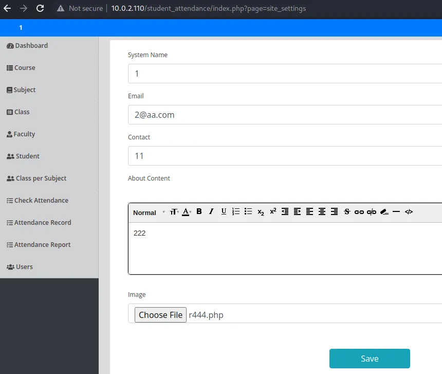 dirb获得http://10.0.2.110/student_attendance/database访问后获得用户名密码hash,丢cmd5完事